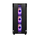 Featuring four A-RGB Rainbow fans pre-installed, a mesh front panel for optimized airflow and a tempered glass side panel, the Hunter offers style and functionality. A-RGB lighting can be controlled with the buttons on the top of the chassis or via +5V A-RGB M/B Sync. The control hub (DF-501-V2) allows M/B fan speed control for users to set their perfect balance between maximum airflow and silent operation.