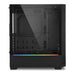 Compact Design with Power Supply Tunnel. The RGB FLOW has a compact design that can cut a fine figure anywhere, without having to make compromises in terms of compatibility. Graphics cards with a length of up to 35 cm have room underneath a CPU cooler with a height of up to 16.5 cm. Power supplies with a maximum length of 21.5 cm can disappear inside the power supply tunnel on the bottom panel of the case.