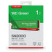 SanDisk Green WD ™ SN3000 NVMe™ SSD POWERED BY 1 TB. SSD capacity: 1 TB, SSD form factor: M.2, Component for: PC/Notebook/Game console