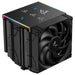 An all-black variation of the dominant AK620 high-performance CPU cooler. The same premium-quality materials, featuring six advanced copper heat pipes, a dense matrix pattern dual-tower heat sink, and two silent FDB fans, produce a powerful winning formula for high performance cooling in a ZERO DARK raven design.